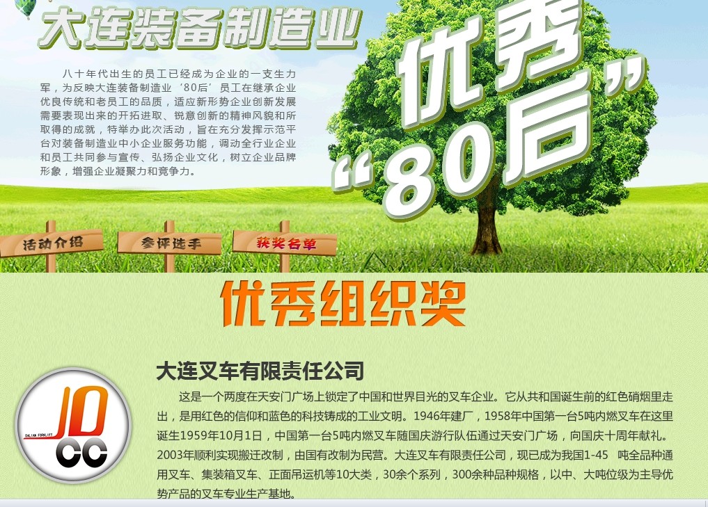 此次活動,充分展示了公司優秀“80后”在繼承和發揚叉車搖籃的優良品質、適應新形勢企業創新發展需求中所表現出來的開拓進取、銳意創新的精神風貌和所取得的成績。他們用自己最美好的青春時光,演繹著在各個重要崗位上的擔當與責任,他們用最樸實的敬業精神,譜寫著“忠于公司、與公司共命運“的嶄新篇章。 讓我們為他們自豪,為他們鼓掌!