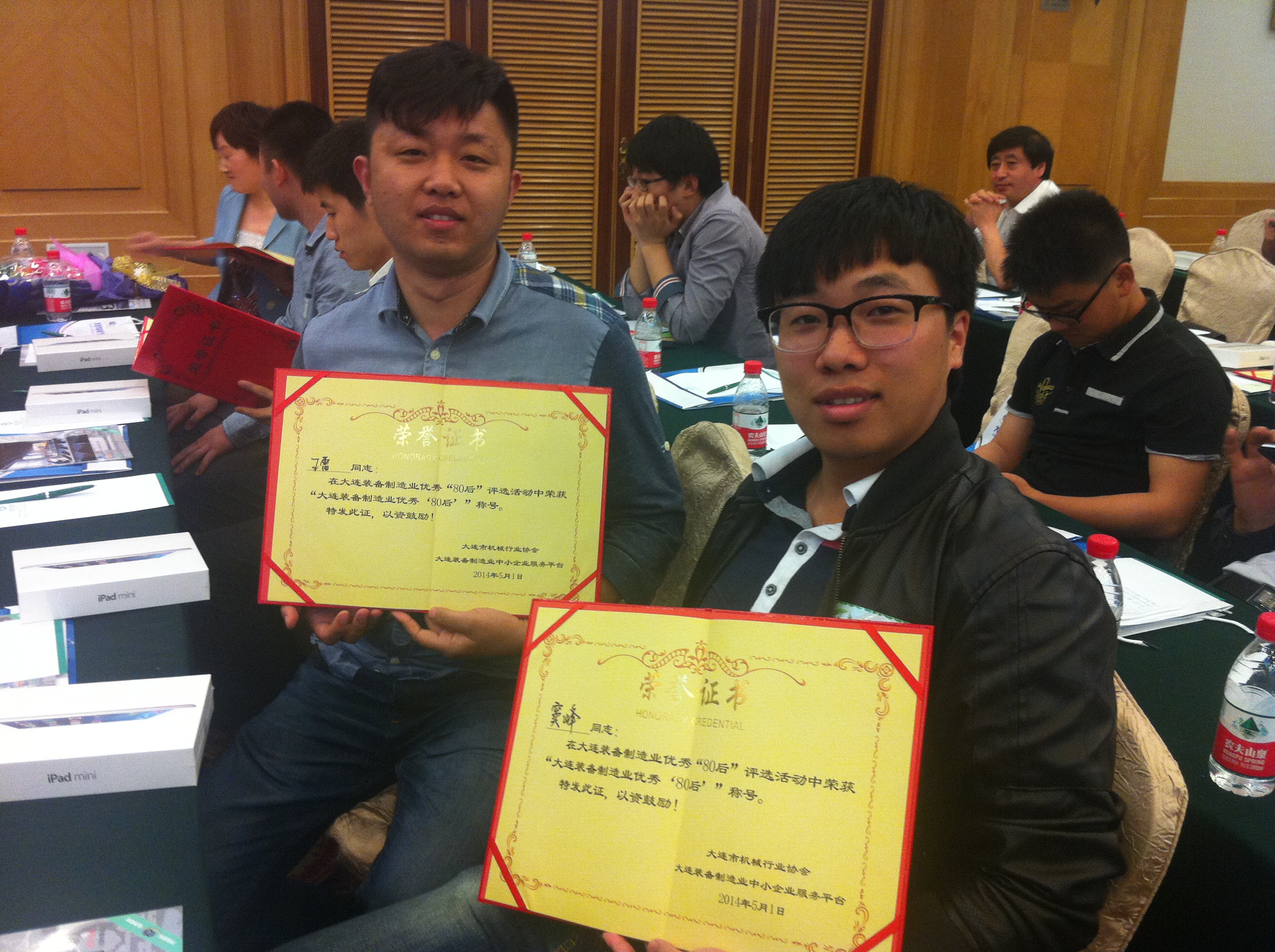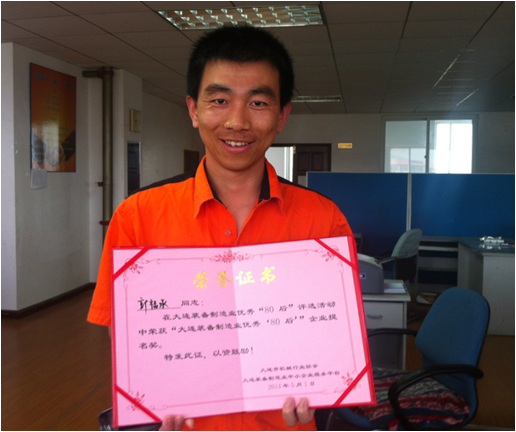我公司7名“80后”員工入圍參選,其中:信息中心王雷、生產管理中心竇峰排名前十,榮獲“大連市裝備制造業優秀‘80后’榮譽稱號”,并分別獲得榮譽證書及mini ipad一部;總裝車間孫偉、機加車間舒陽、內燃機中心王野、張偉及工藝中心郭福承榮獲“大連裝備制造業優秀‘80后’企業提名獎”,并分別獲得榮譽證書及無線鼠標鍵盤一套。