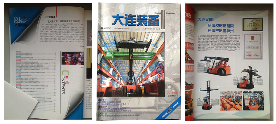 近期,在由大連市機械行業協會主辦發行的業內雜志《大連裝備》中,大連叉車有限責任公司壓軸登場,出現在該雜志2014年末版的封面上。《大連裝備》以“大連叉車:品牌戰略結碩果,名牌產品譽神州”和“大連叉車,挺起民族工業的脊梁”為題,在刊內頭版對大連叉車進行了專題報道。