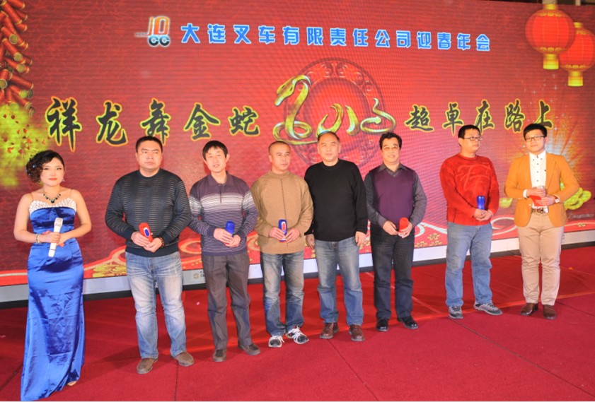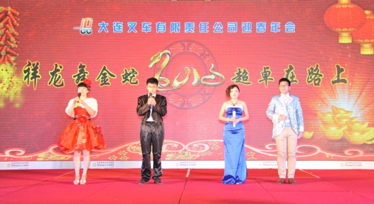2月7日17:18分,大連香格里拉大酒店三樓大宴會廳里張燈結彩,喜氣洋洋,一片歡樂祥和的熱鬧景象。大連叉車有限責任公司員工們期待已久的2013迎春年會隆重召開了,張張喜悅的笑臉在這里如花綻放,向外界傳遞著大叉人的那份自豪和榮耀。