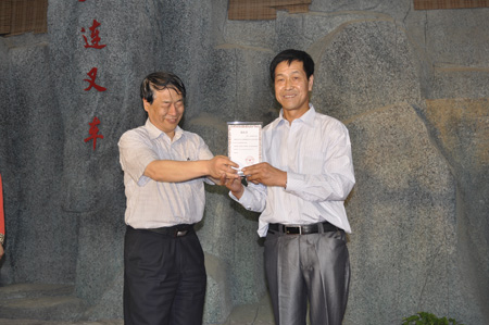 大連叉車有限責任公司董事長孟祥亭先生為邢臺天正工程機械有限公司總經理邢繼湖先生進行了大連叉車河北沙河辦事處的授牌儀式。